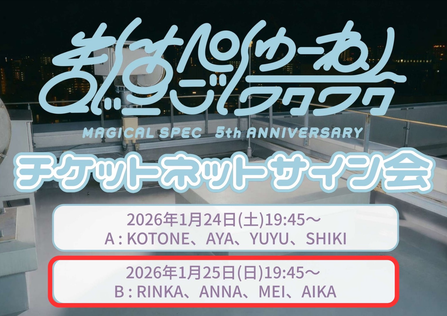 【MAGICAL SPEC】【B : RINKA、ANNA、MEI、AIKA】MAGICAL SPEC5周年記念ライブ 「まじすぺごしゅーねん〜ワクワク〜」 チケットネットサイン会