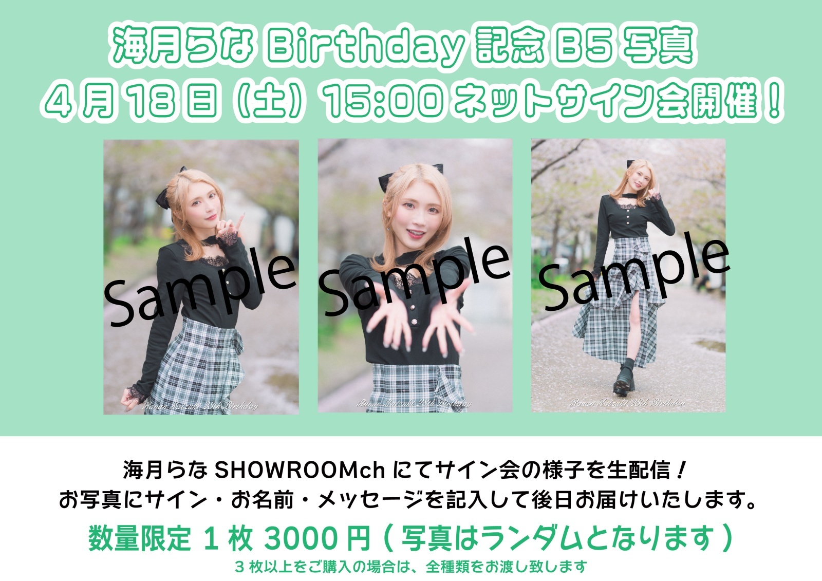 【LinQ】【数量限定!追加販売決定!】4月18日(土)『SHOWROOM個人配信 海月らなBIRTHDAYネットサイン会』